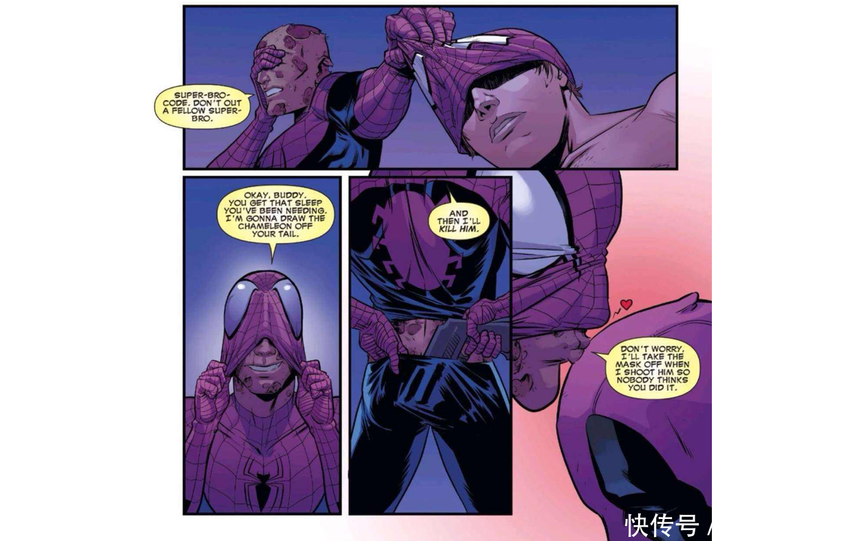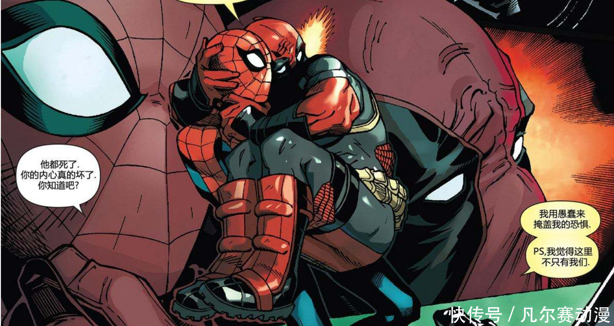 在漫威漫画中令东谈主崩溃的事情是和死侍待在一个房间内然后和死侍聊天,更令东谈主崩溃的事情是在这个房间内有蜘蛛侠和死侍,而你要和他们两个聊天。施行情况下,就算是蜘蛛侠也承受不住死侍的吵闹,死侍真是很可爱蜘蛛侠,相配海涵,海涵得有些过分,收拢契机就不休地言语,而这个名所在,其实才是不雅众们念念要看到的。