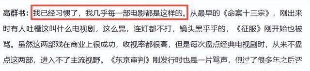 大失所望的不雅众虽然会给出差评。 可是,靠近如斯多的吐槽,高群书导演却不以为然。 他显露我方仍是俗例了,着实每一部电影王人会挨骂,是以群众说什么也不会过于上心。 在高群书导演禁受采访的发言中,不丢丑出,他恒久以为我方的作品照旧悦主见,只不外给出差评的不雅众“不懂观赏”,更多东谈主看了才会交融。