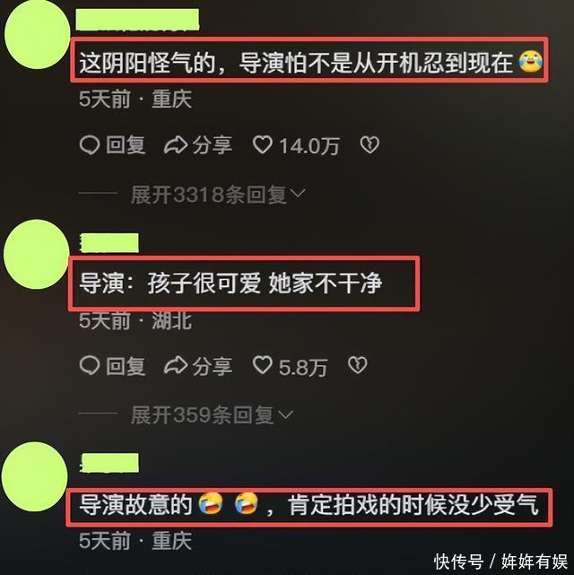 此话一出,切片视频蓦的在全网刷屏。 网友倒亦然好心,群众不谋而合地以为高群书在“暗讽”。 “阴阳怪气的,导演怕不是从开机忍到当前。” “导演:孩子很可儿,可她家不干净。” “导演独特的,确定拍戏的技术没少受气。”