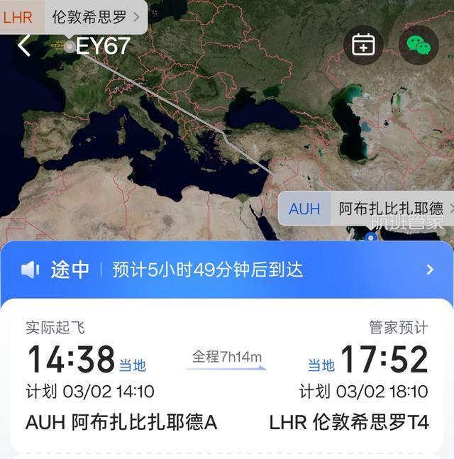 阿布扎比赶赴伦敦的客机升空(图源:航班管家)