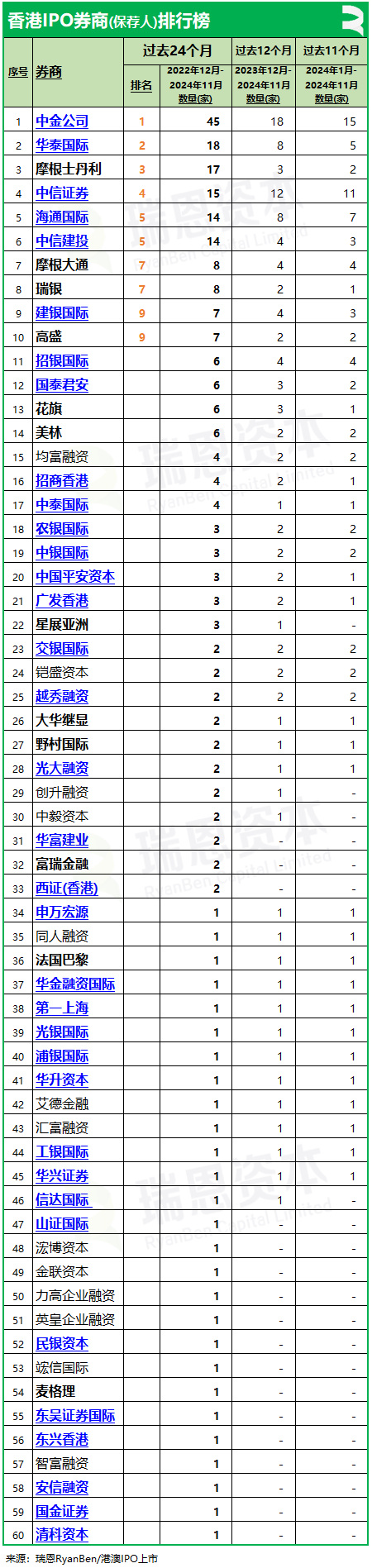 为了更精确地反应香港中介机构的及时表示,让统计数据更具意旨,瑞恩RyanBen每个月更新‘往日24个月’、‘往日12个月’、‘往日11个月(本年以来)’的回荡名次数据。