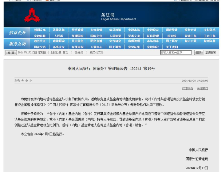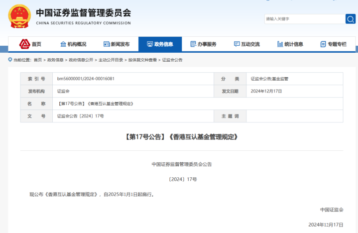 12月20日,中国证监会官网发布音尘,改良发布《香港互认基金科罚章程》(以下简称《科罚章程》),自2025年1月1日起膨胀。