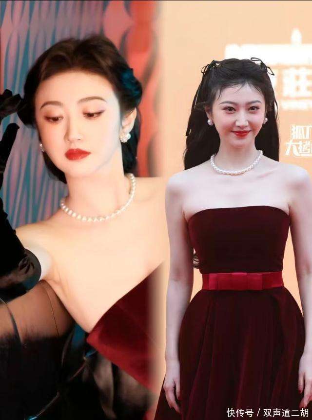 景甜走红毯前的预报造型号称惊艳。酒红色的治服搭配珍珠项链,再配上手推波的守旧发型和优雅的黑丝绒手套,故事感都备,妥妥的电影女主脸。联系词,到了红毯上,造型却发生了变化,精粹的手推波不见足迹,面目一新的是用两个发带浮浅扎的公主头,额前碎发回显得油乎乎的。番茄君不禁忖度,难谈是她的团队认为新发型更能显年青?但在电影的宇宙里,故事感永远优先于好意思感,番茄君如故更赏玩预报中的造型,不知最终呈现的造型能否得到不雅众的招供?