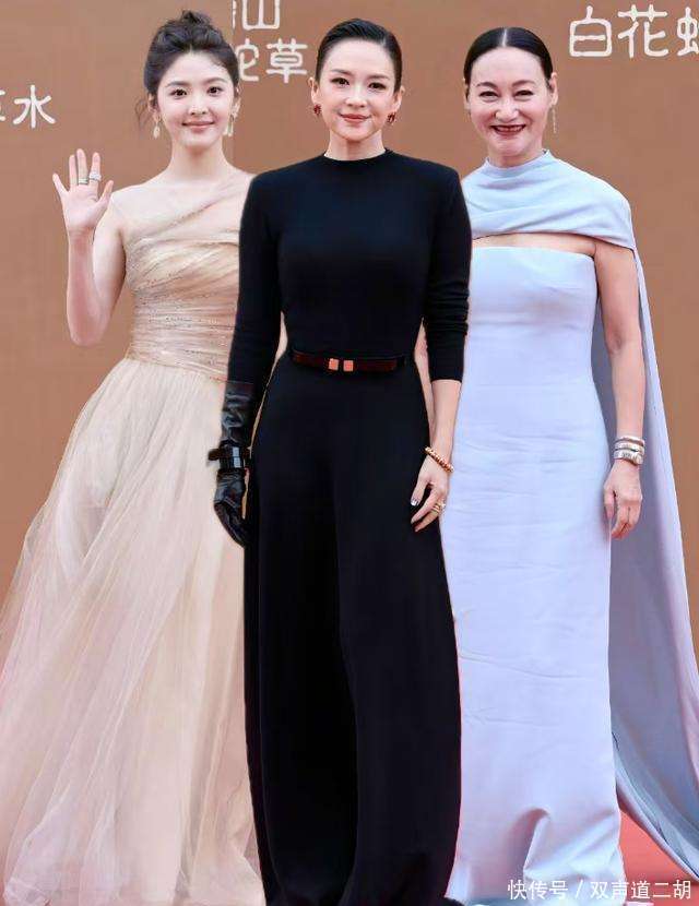 秦海璐和梅婷构成的组合,是当晚红毯上最养眼的存在。秦海璐的治服充满特质,看似胸前大面积镂空,实则是肤色布料的障眼法,衣服斑纹仿若项链,贪图别出机杼。梅婷的礼顺服简大气,大 V 领玄色修身连衣裙搭配一条项链,恰到平正地展现出她的优雅气质。两位女演员身段保抓得极佳,微微的小肚子不仅莫得影响好意思感,反而让治服愈加贴合肉体,线条婀娜有女东谈主味。尤其是梅婷折腰那一刻,含羞带怯、柔媚动东谈主,《父母爱情》里的好意思东谈主风度依旧。她们在岁月的长河中千里淀出的魔力,让年青女星们可望弗成即,她们又将如安在电影界接续书写我方的清明呢?