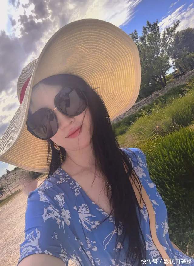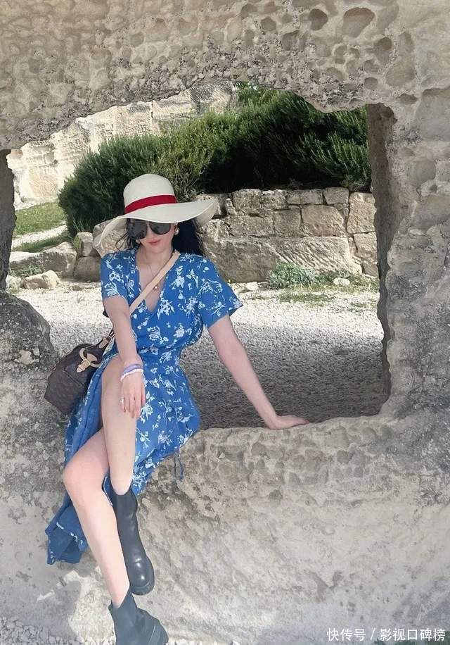 从刘亦菲晒出的像片中看,她戴着超大遮阳帽与墨镜,一把长直发披垂着,化着红唇,衣着一袭蓝色印花深V连衣裙。一看就知谈,进程全心的打扮,又好意思又飒。