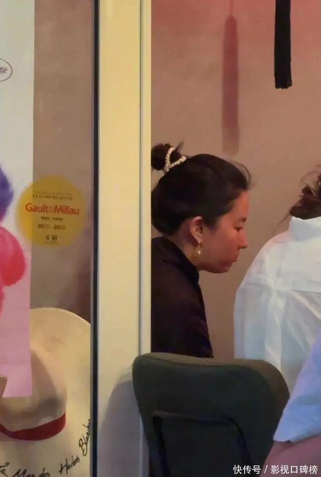 刘亦菲衣着玄色上衣,戴着从简的珍珠耳环,扎着丸子头。应该是素颜,脸蛋胖胖的,看上去很可人,她的气色很可以。发现,刘亦菲坐在椅子上吃饭时,有些驼背。