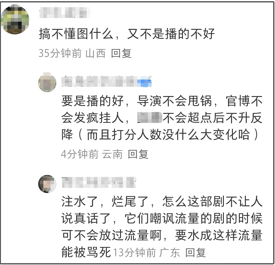 王人说剧集扑街了,从主创到演员才会相互甩锅,《以法之名》在烂尾风云之前,热度和口碑王人是公认爆款,如今颇有种被撕下遮羞布的嗅觉,敢情不光剧情注水,热度和口碑也注水了吗?