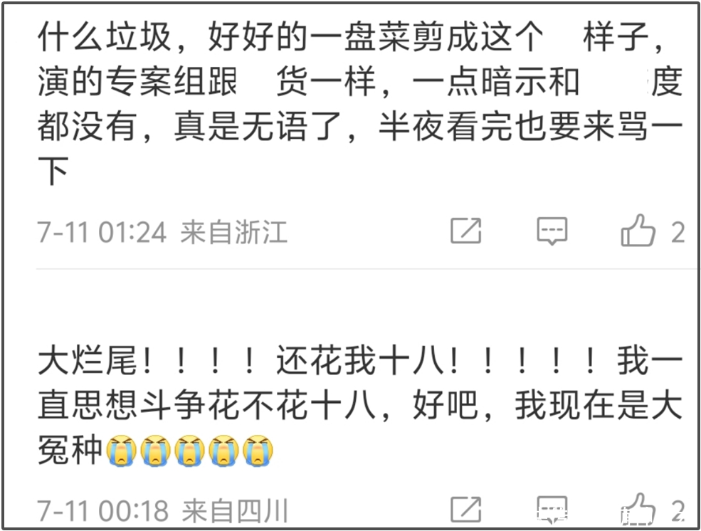 固然了,依然不成用爆料和估量就否定《以法之名》一齐成绩,一部剧播完从导演、编剧到演员不光没能收货红利,反而影响了过往积存口碑,不雅众更是渴望越大失望越大,对《以法之名》恨铁不成钢。