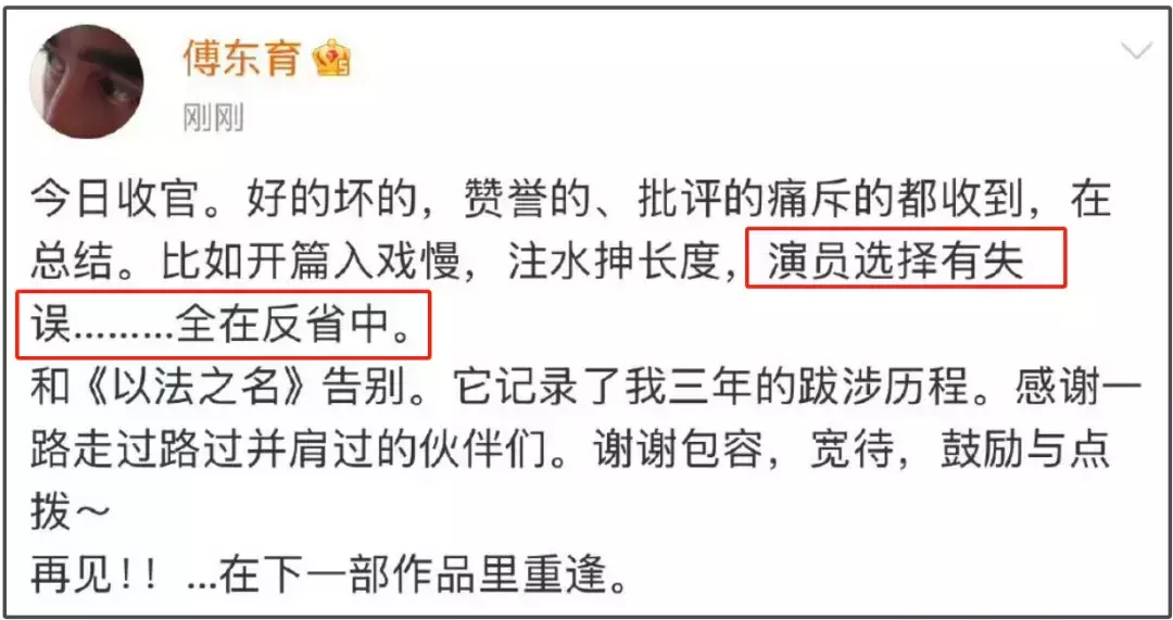 更巧妙的是《以法之名》主创的魄力,在不雅众看来,兼任导演和编剧的傅东育需要负主要拖累,而他在《以法之名》大结局之前就关闭了评述区,烂尾风云爆发之后,更是发了一条动态疑似甩锅。