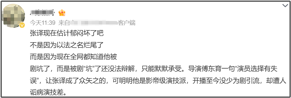 《以法之名》差评更多连结在烂尾和剧情注水上,傅东育偏专爱提一嘴演员选拔有缺欠,转偏激扮演禹天成的老戏骨丁勇岱还点赞了吐槽张译演技的动态,张译瞬息成了众矢之的,难熬背上了影响《以法之名》口碑的大锅。