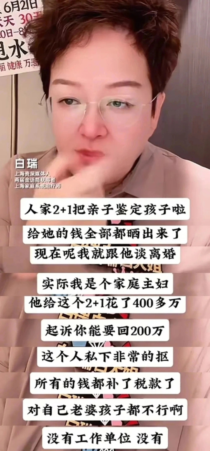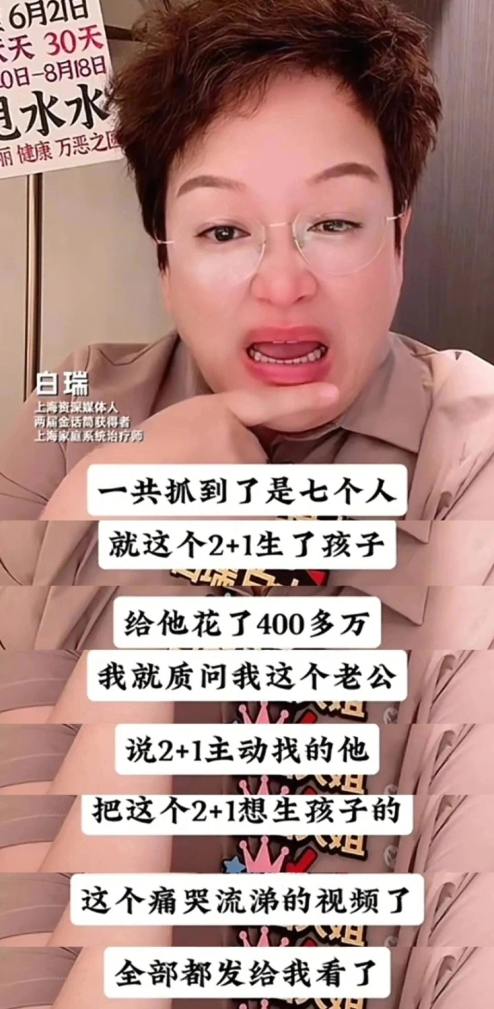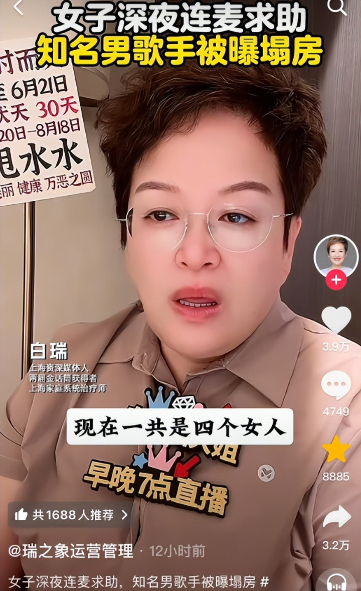 尔后,白瑞直播间出现了那通让东谈主念念入非非的连麦:丈夫出轨、偷税漏税、宠小三、鄙吝又心狠,还曾与多名女歌手有染……