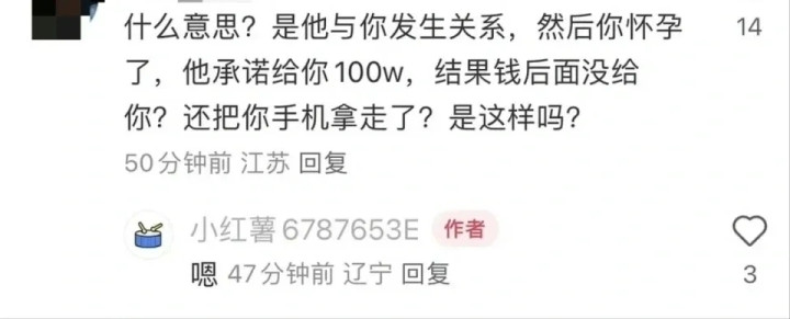 一会儿说没见过韩磊,一会儿说孩子皆作念试管生下来了;一边说韩磊许愿100万,一边又晒出30万的聊天记载。