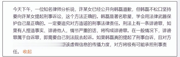 韩磊方明确暗示:不罗致谈歉,谈歉不等于免责,更不可替代法律的刑事包袱。