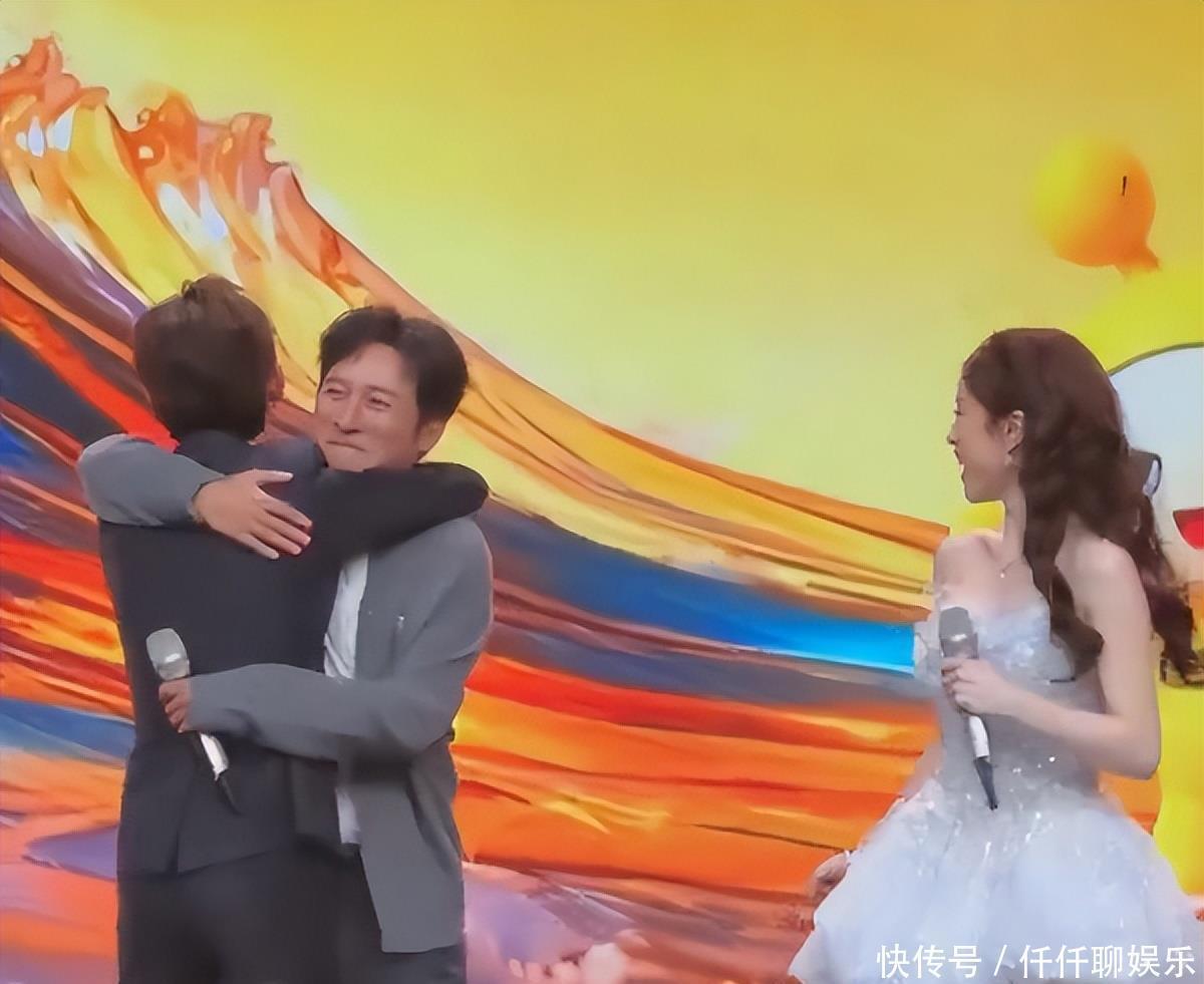 一上台,何炅立马快步迎上去,给了他一个有劲的拥抱,笑着冲他说:“维嘉,回来啦!”