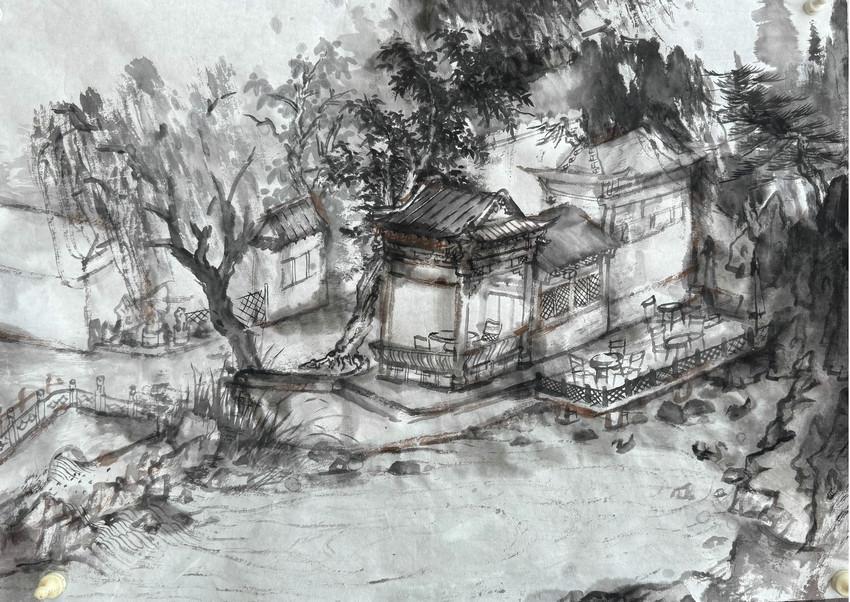 周书扬以日坛公园景致为例,阐扬其“以中心放射全局”的染色政策——以船坊为中枢区域,附进通过淡墨渲染营造氛围,慢慢向中心收束,既保捏画面通透感又强化主体聚焦。他进一步阐发,这种“边勾边皴”式画法能构建丰富的翰墨条理,使后续潜入描摹时能当然延长细节,幸免留白与画图区域脱节,最终达成“白处空灵、墨处安逸”的和解画面,既陆续传统水墨精髓,又注入现代后生画家的翻新抒发,让不雅众在翰墨流转中感受当然与历史的磨灭之好意思。