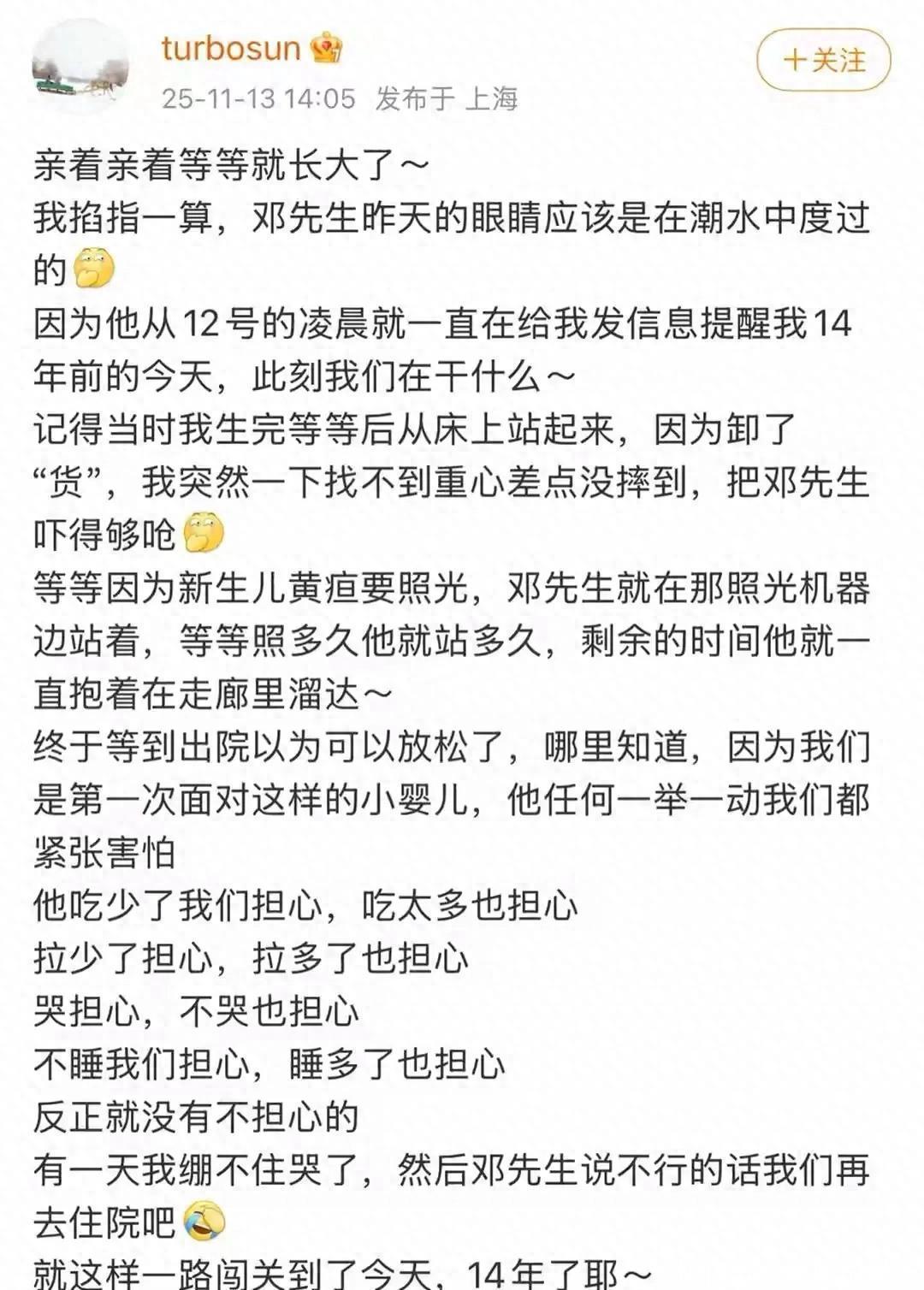 11月13日开云kaiyun官方网站,孙俪在酬酢平台发长文为14岁女儿庆生,其中的谦和细节让浩荡网友破防。她写谈“亲着亲着等等就长大了”,还捉弄老公邓超的眼睛“在潮流中渡过”。本来邓超从12号凌晨就运行领导她,14年前的此刻两东谈主正在资历初为东谈主父母的病笃与甘愿。