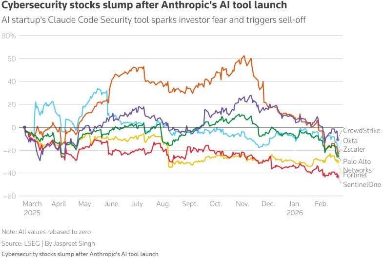 Anthropic推出东说念主工智能用具后,网罗安全股暴跌