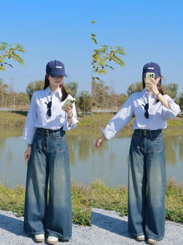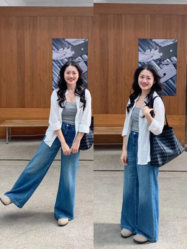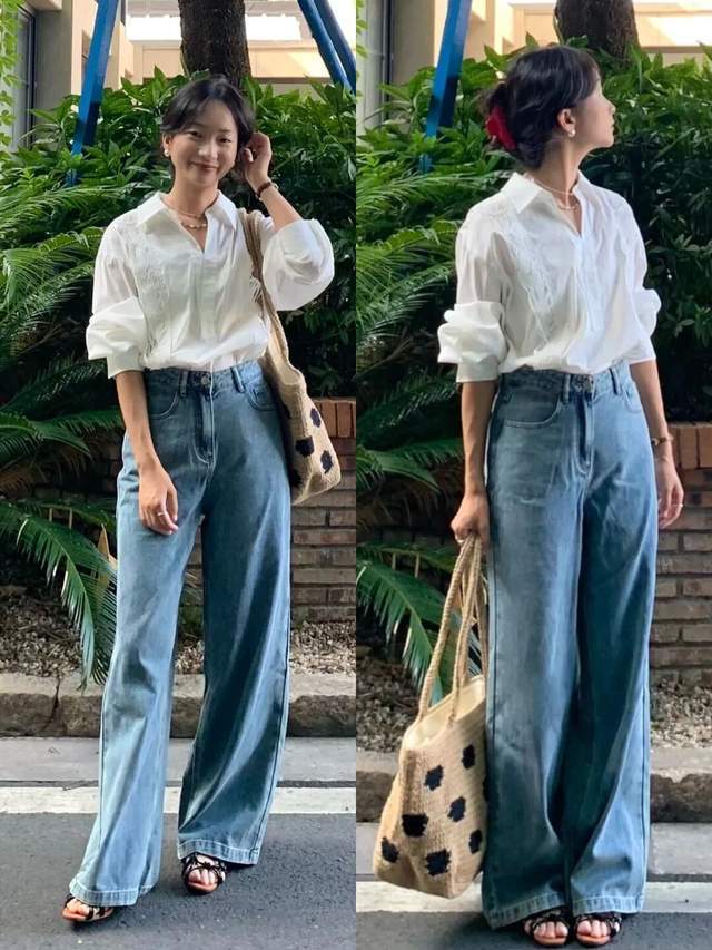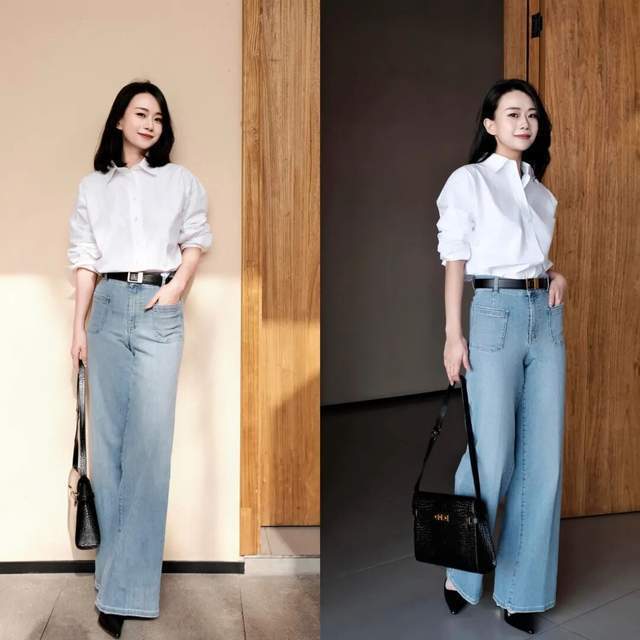 举例上头这一套穿搭,胜利选拔白色的衬衫搭配上牛仔阔腿裤,脚上穿的一对小白鞋,大约利落
