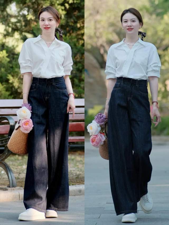 最主要的一经看你心爱什么样的穿衣立场,不必盲目跟风,找到符合我方的才是最佳看的穿搭。举例上头用白色衬衫搭配上蓝色牛仔阔腿长裤开云kaiyun中国官方网站,脚上穿的一对小白鞋,优雅利落,通勤穿搭很是的多礼耐看。