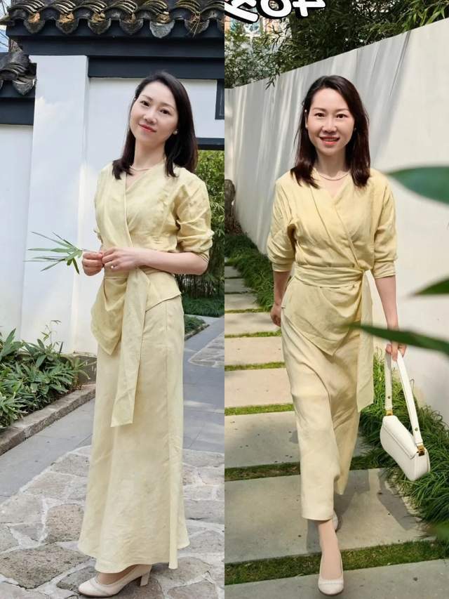 如果你比拟偏疼优雅的女东说念主味穿衣立场,咱们不错选拔一套鹅黄色的衬衫裙装,搭配一对白色的粗跟单鞋,穿的本领再把上衣的衬衫腰带系起来,就能变成高腰线,既优雅又多礼大方。