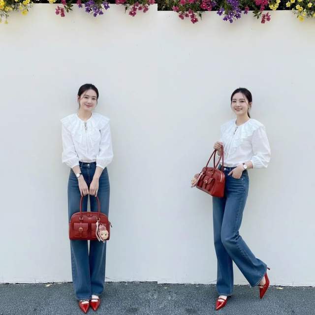 或是选拔一件小众的白色衬衫,搭配上经典的蓝色牛仔裤,脚上穿了一对红色的尖头单鞋,这样的穿搭有一种轻熟风的气质,关联词能使得穿搭者举座打扮显得愈加有活力。