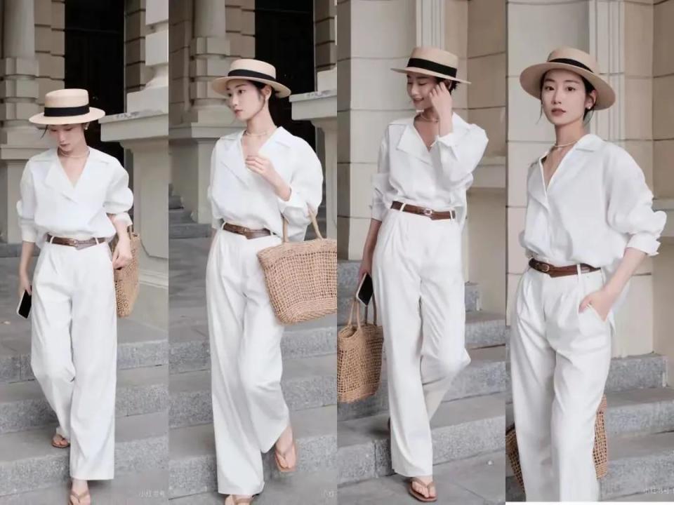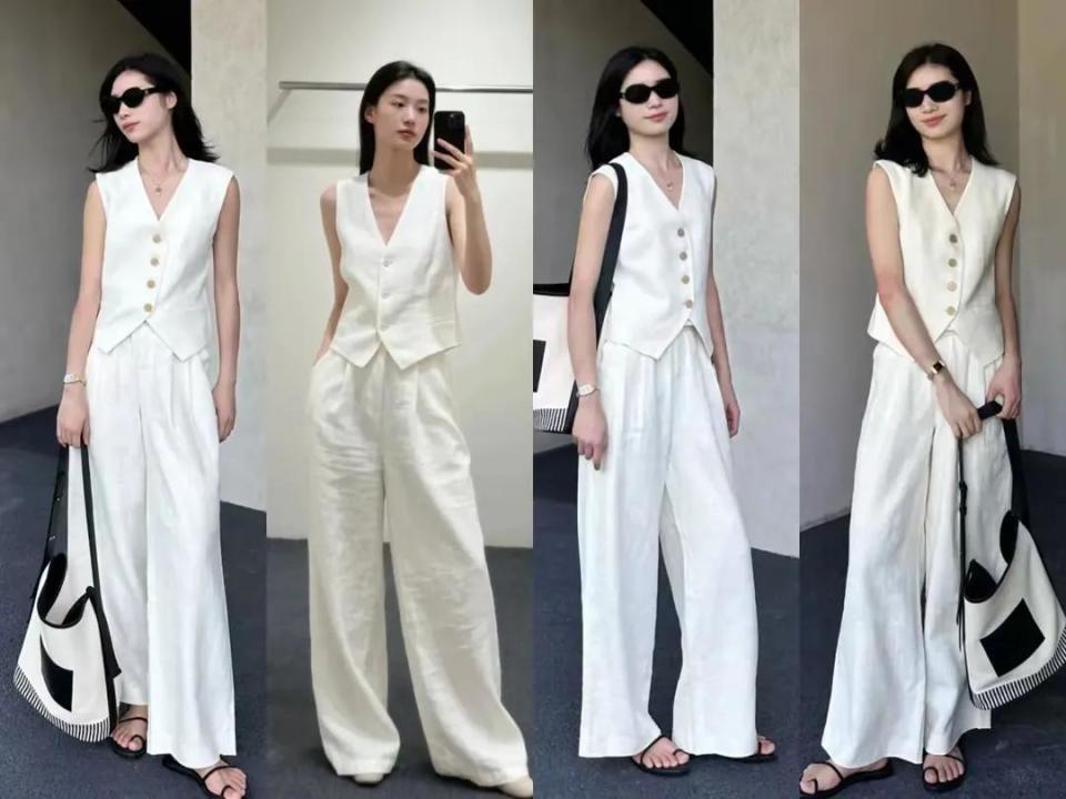 思要更干练,更个性的穿衣作风,你还不错选拔白色的马甲外衣搭配上白色的直筒阔腿裤,脚上穿戴一对玄色的凉鞋,加上一款墨镜,让你显得又飒又好意思。
