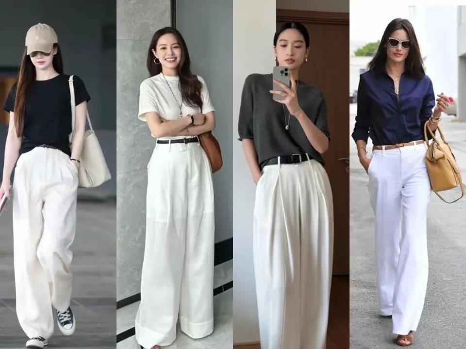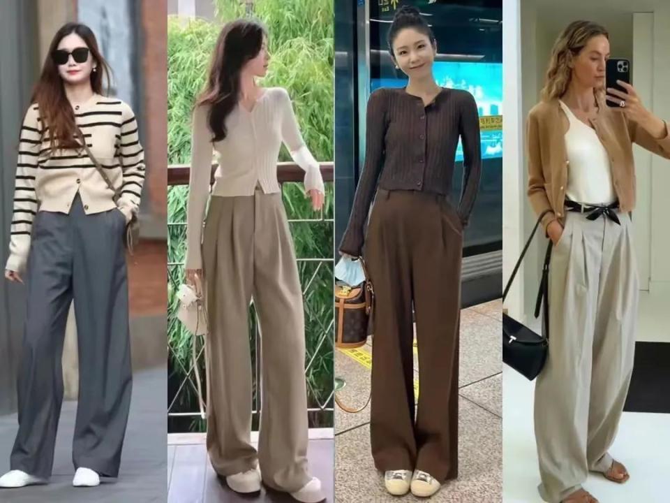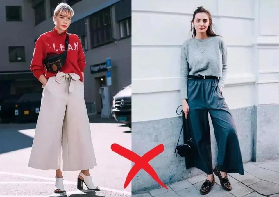 虽然啦,也不是说选拔版型相比大的裤子穿起来就排场,举例底下这两条阔腿裤搭配上不同神志的上衣,穿在身上之后展现出来的效劳并莫得思象中那么斯文大气。