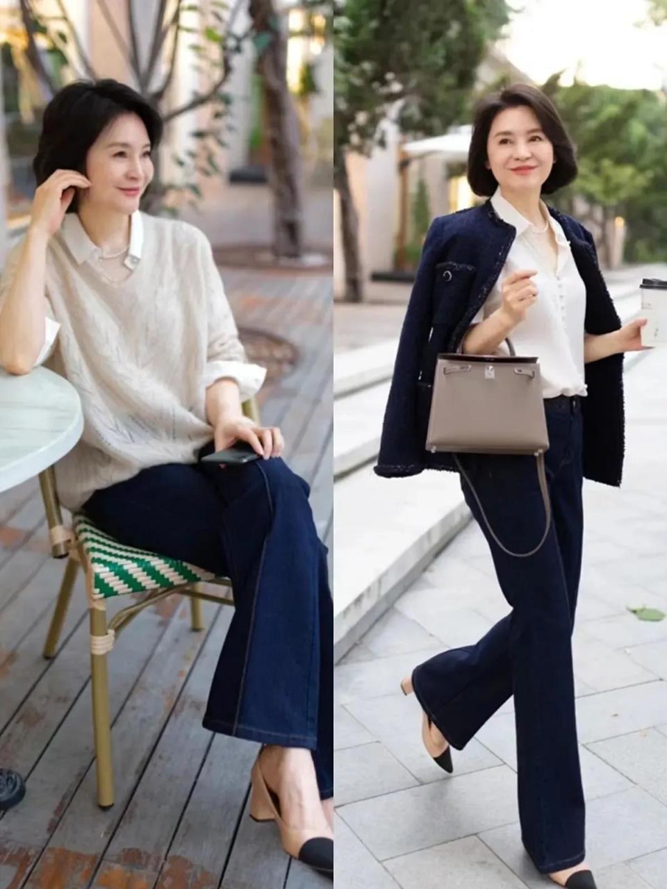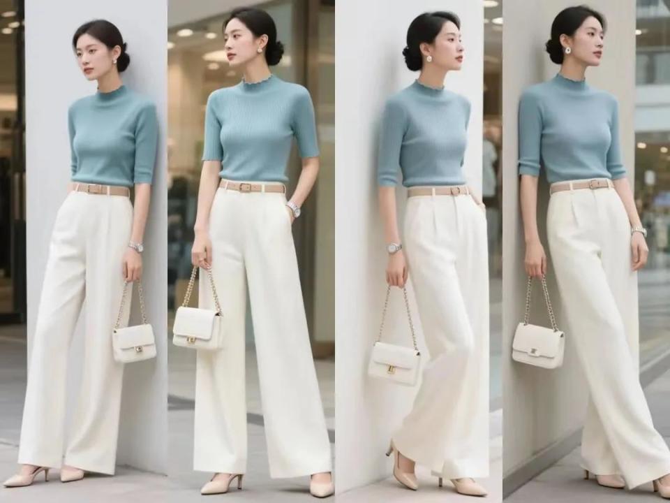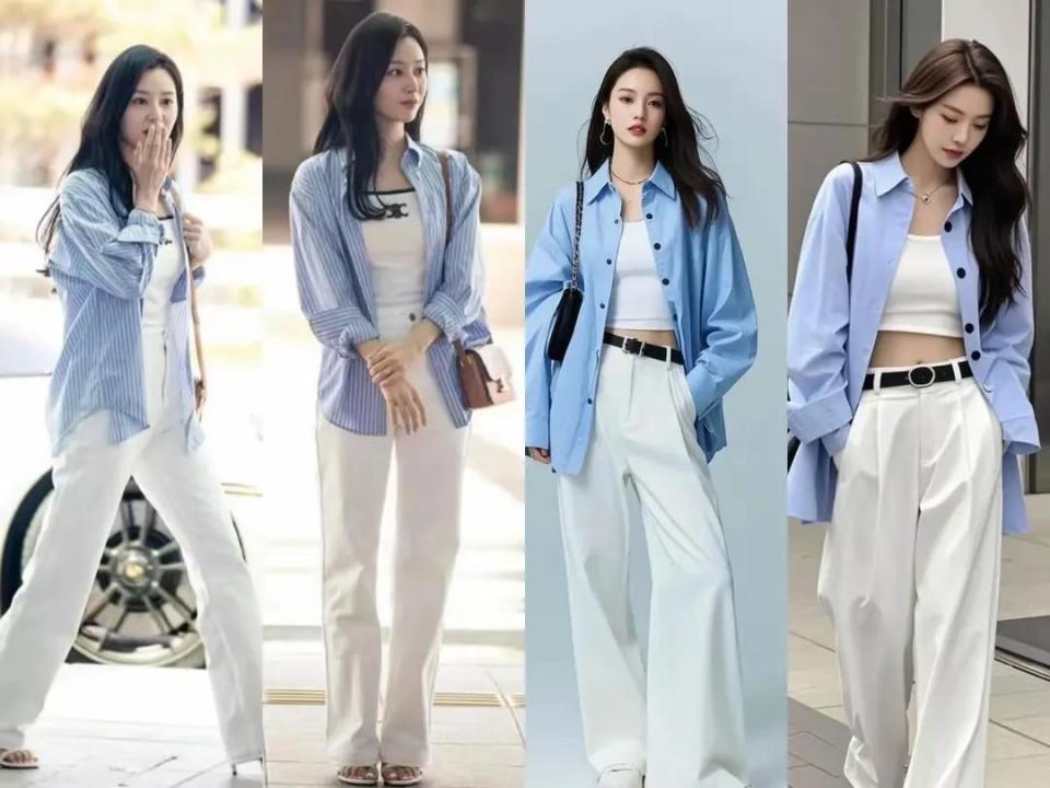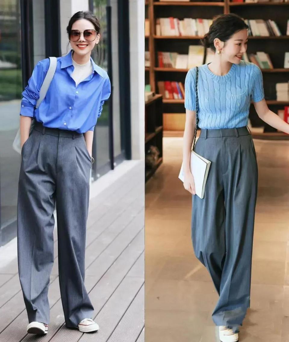 岁月仓猝,技艺过得真快,如故到了8月份了,到了夏日下旬的时候,你思要什么样的穿衣作风呢?荒谬是中年女性,因为东谈主到中年,躯壳容易发福发胖,这时候就思方设法的选拔,宽松的上衣来遮住腰间的赘肉,然而会打扮和不会打扮的区分真很大。 虽然啦,也不是说选拔版型相比大的裤子穿起来就排场,举例底下这两条阔腿裤搭配上不同神志的上衣,穿在身上之后展现出来的效劳并莫得思象中那么斯文大气。 是以我们一定要字据我方的身体比例,年事还有肤色,选拔符合我方的衣服神志 接着我们再来看,用一件藏蓝色的衬衫内搭玄色诚挚打底衫